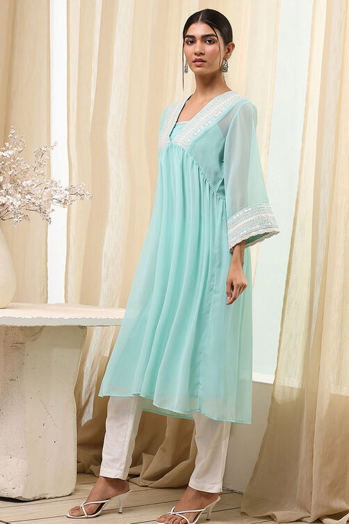 Reveal effortless sophistication with our elegant aqua gathered kurta. Ideal for both casual outings and professional gatherings, this kurta is designed to offer exceptional comfort without compromising style.