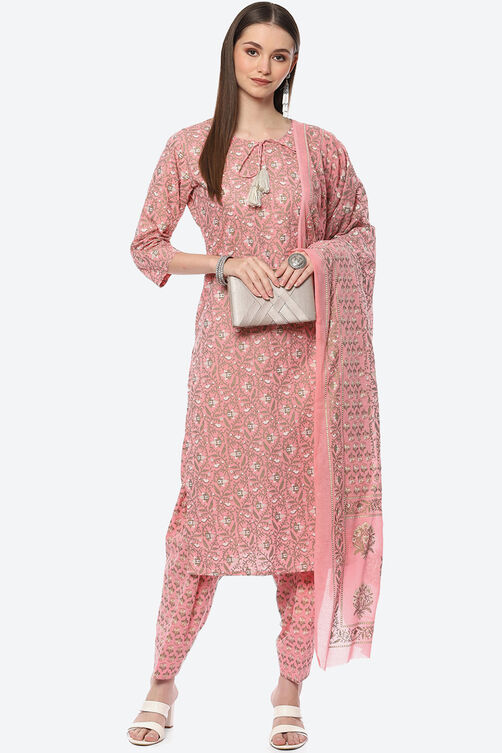 Assorted Cotton Hand Block Print Unstitched Suit Set