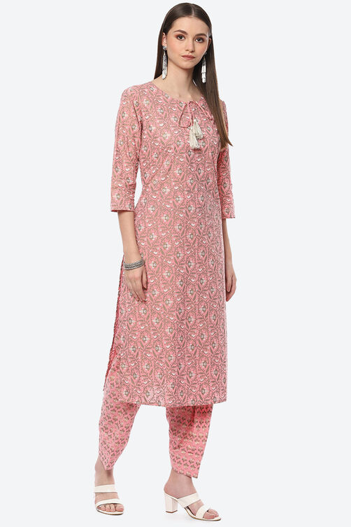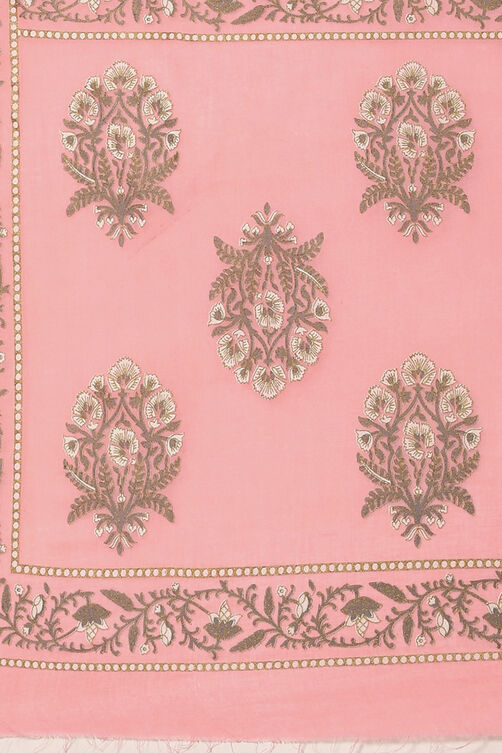 Discover the essence of ethnic elegance with this captivating unstitched suit set. Made from cotton fabric, it ensures comfort and breathability. The exquisite print work adds a touch of sophistication, making it suitable for any special event. The set comprises a graceful kameez, a matching dupatta, and bottoms, providing a complete outfit solution. Accentuate your style with jhumkas and embroidered flats, elevating your look to new heights.