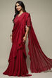 Berry Pre-Draped Nylon Saree With A Stitched Blouse