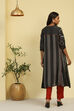 Black Viscose Blend Geometric Printed Straight Kurta