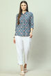 Blue Cotton Printed Straight Shirt