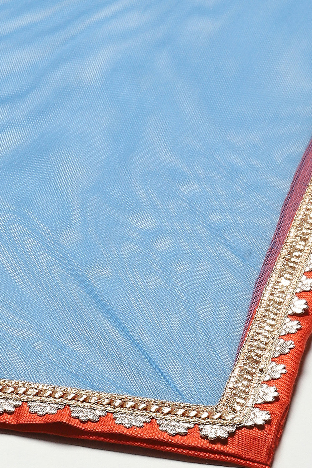 Blue Orange Poly Viscose A-Line Solid Suit Set