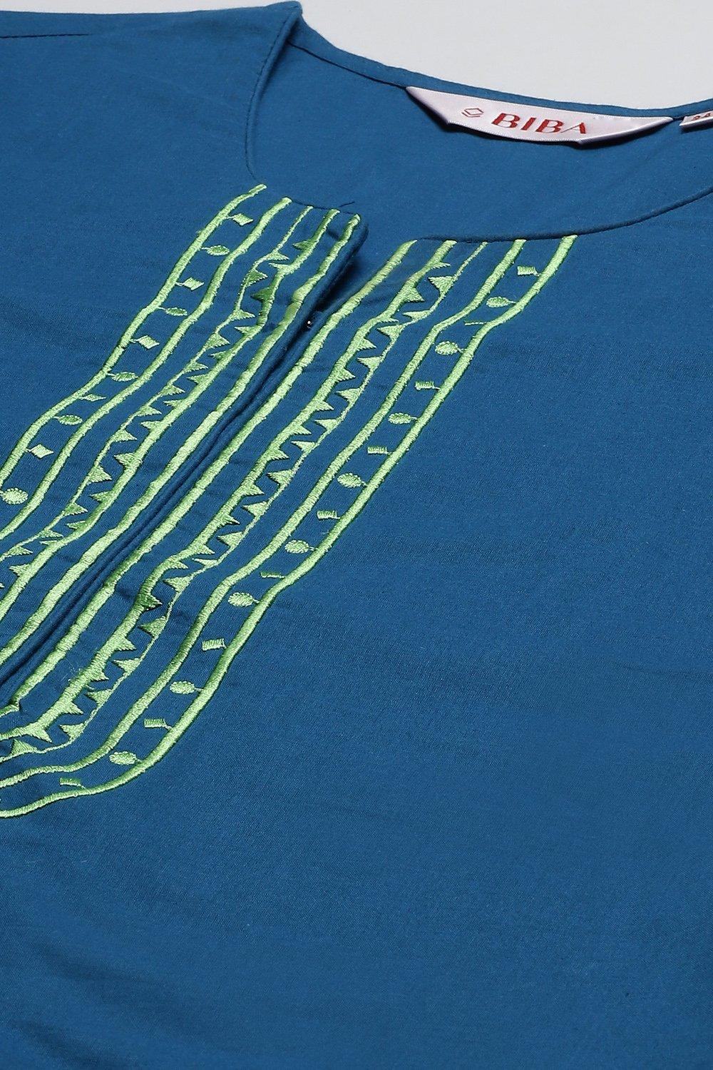 Blue Cotton Solid Straight Suit Set