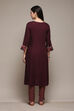 Burgandy LIVA Gathered Solid Kurta Slim Pant Suit Set