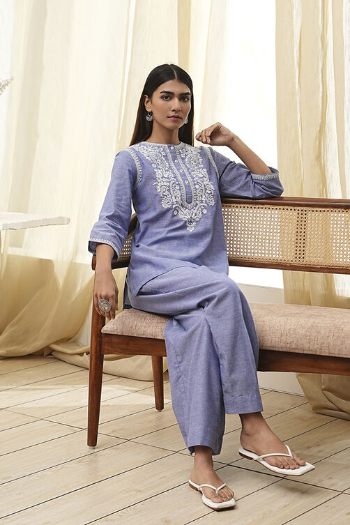 Dull Blue Cotton Straight Co-ord Set