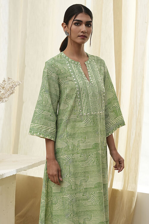 Introducing our printed green straight kurta, meticulously crafted from pure cotton to offer the perfect combination of comfort and style for the summer months. This elegant piece effortlessly merges traditional charm with modern sophistication, making it a timeless addition to your wardrobe.