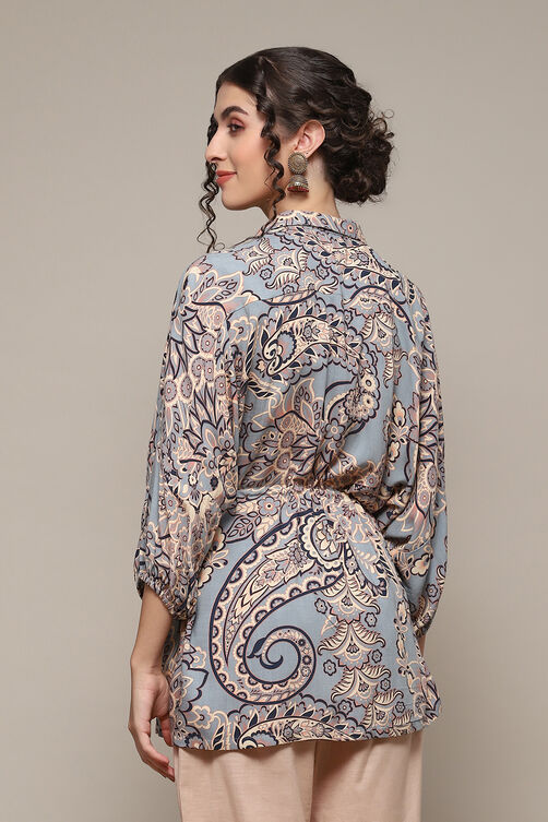 Refine your fashion sophistication with this chic printed top, skilfully tailored from rayon fabric. The shirt boasts a trendy band collar and fashionable three-quarter sleeves, exuding a contemporary vibe. Adorned with captivating large traditional prints, it also features a waistband for a customizable fit. Pair it effortlessly with straight Pants and complement the ensemble with stylish hoops, creating a perfect office look that exudes confidence and style.