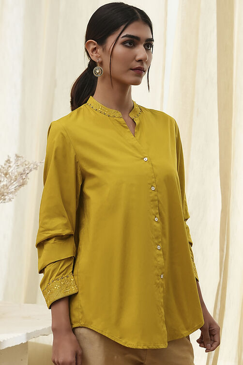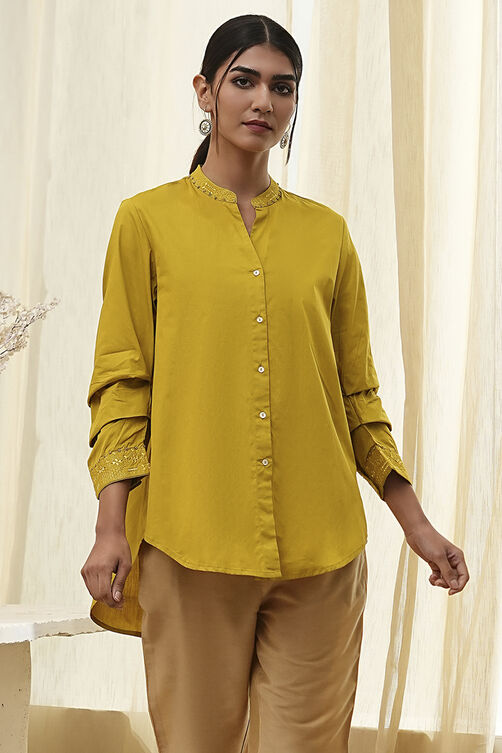 Honey Mustard Cotton Solid High-Low Shirt image number 0