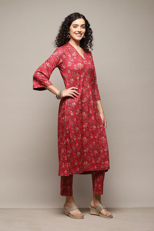 Introducing our hot pink spandex blend straight printed 2 piece set, a dazzling choice for the fashion-forward woman. This winter wear ensemble combines a straight kurta, enhanced with functional buttons for a touch of elegance, and flowing palazzo pants, both showcasing stunning floral multicolour prints. Crafted from a cozy spandex blend, this set offers both style and comfort, making it perfect for a variety of occasions, from festive gatherings to casual meet-ups. The 3/4th sleeves and vibrant hot pink hue add a lively burst of colour to dreary days. Pair with silver bangles and white strappy sandals to complete this effortlessly chic look.