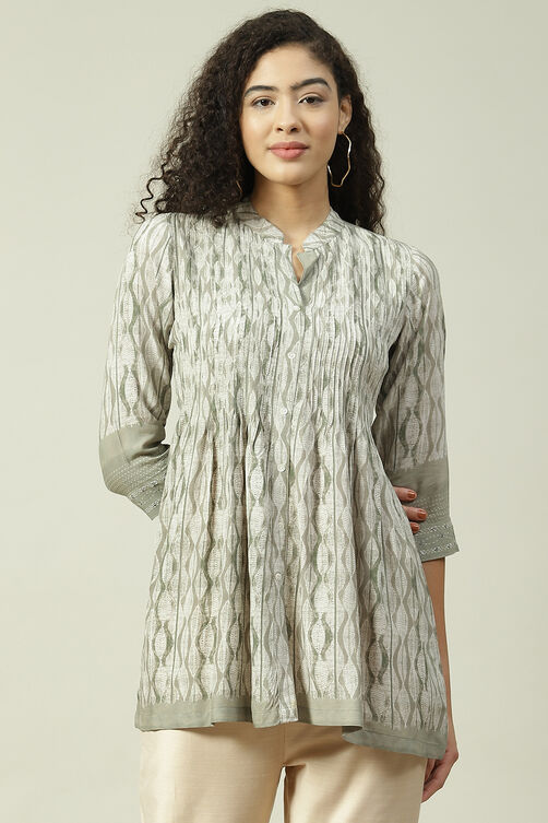 Ash Grey LIVA Flared Printed Short Kurti