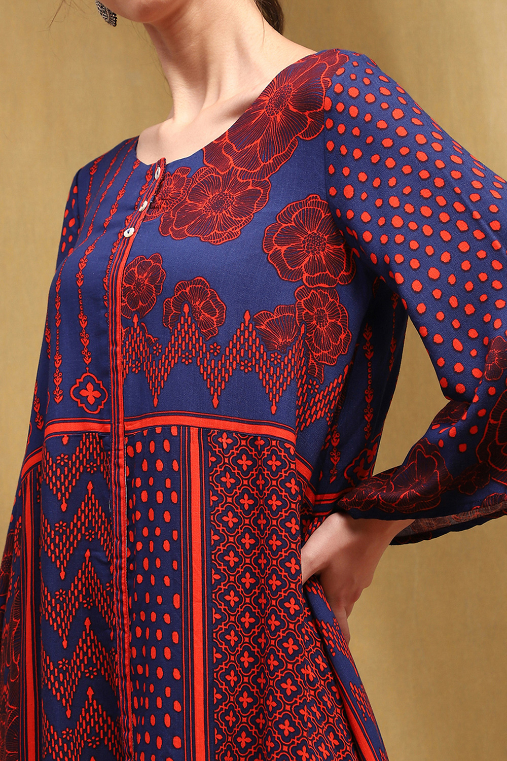 Make a statement in this stunning blue and red asymmetric kurta set. Crafted from premium rayon, this outfit offers exceptional breathability and comfort, making it perfect for casual occasions that call for a hint of sophistication.