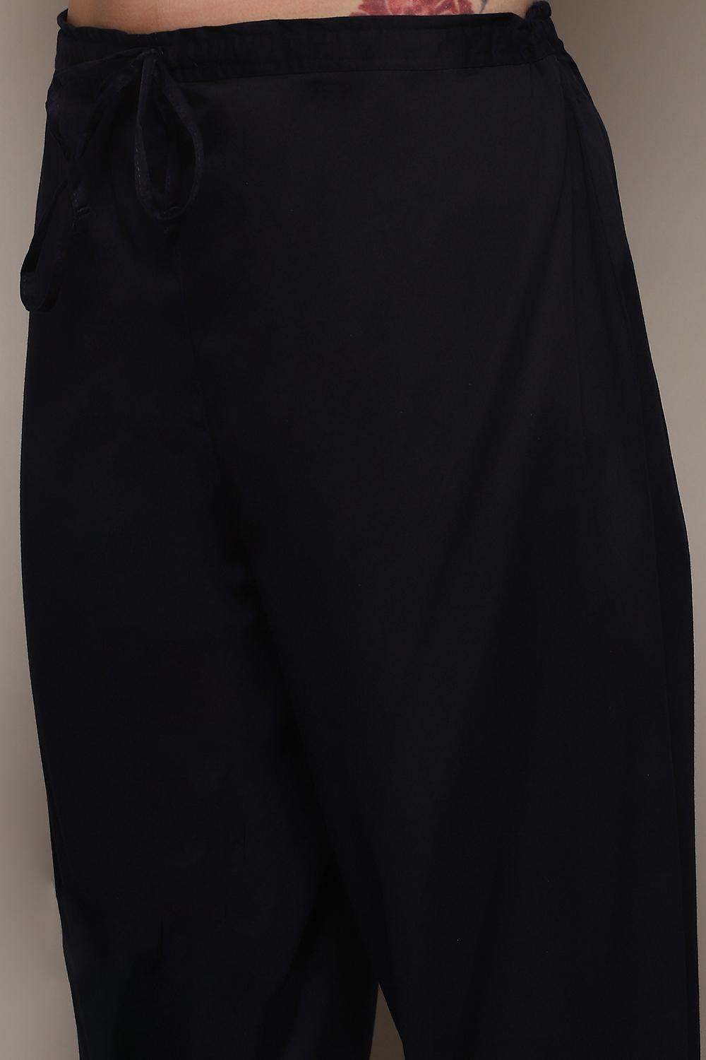 Indigo Cotton Blend Kalidar Printed Kurta Palazzo Suit Set