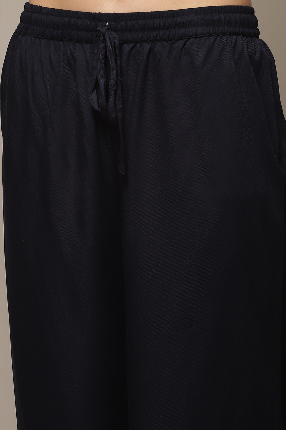 Embrace your inner fashionista with this chic three-piece set made from a comfortable cotton blend. The set includes a sleeveless kurta, an overall, and palazzo pants. The kurta features a round neck and a plain design, while the overall design showcases eye-catching abstract prints. Paired with plain palazzo pants, this ensemble is perfect for both formal and traditional occasions. Add a touch of elegance with an oxidised necklace and earrings, and complete the look with a stylish pair of heels. Wash by hand in cold water using a gentle detergent.