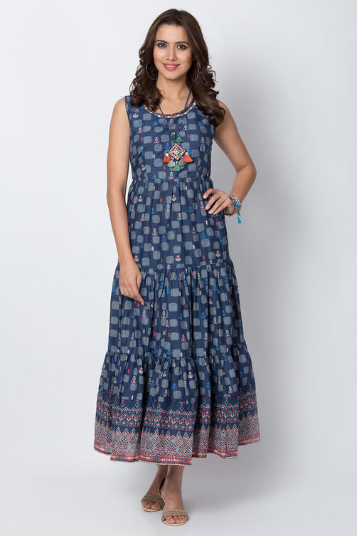 Indigo Flared Cotton Dress