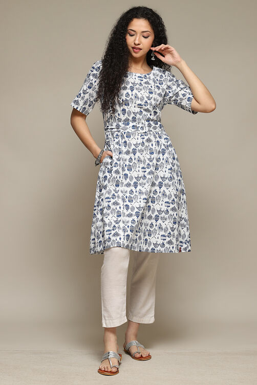 Printed Kurta Featuring Round Neck and Elbow-Length Sleeves