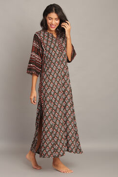 Off White & Turquoise Cotton Printed 2 Piece Sleepwear Set