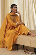 Ochre Yellow Viscose Embellished Gathered Suit Set