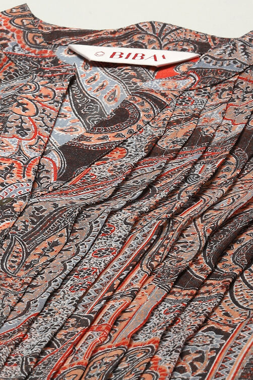 Peach & Blue Polyester Straight Printed Kurta