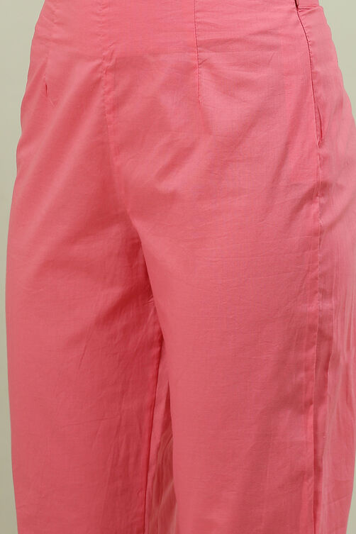 Pink Cotton Straight Kurta Slim Pant Suit Set