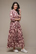 Raise your fashion quotient with this stylish tiered printed dress. Crafted from cotton, it features three-quarter sleeves and a flattering V-neckline. The dress is adorned with heavy floral prints and buttons on the front for an adjustable fit and a refined look. With its sleek waistband accentuating the flared silhouette, it exudes charm. Perfect for parties or office wear, pair it with heels and accessorise with brass bangles or earrings to complete the ensemble. Wash by hand in cold water using a gentle detergent.