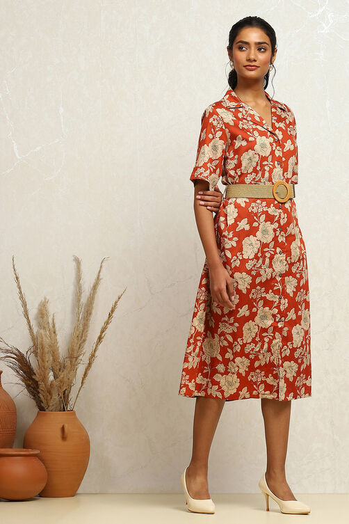 Enjoy the refined charm of this rust printed straight dress. Made from pure cotton for exceptional breathability and comfort, it boasts floral prints that make a striking impression wherever you wear it. Perfect for casual daytime outings and informal gatherings, this dress seamlessly blends style with ease.