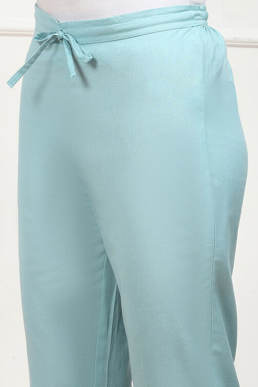 Sky Blue Cotton Solid Regular Pants