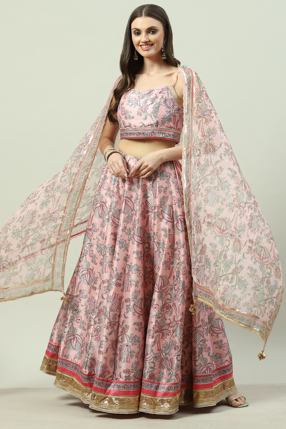 Printed Poly Cotton Blouse with Lehenga & Dupatta