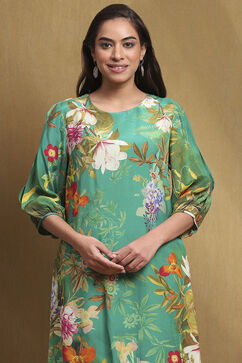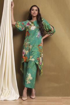 Lime Green Rayon Asymmetric Kurta Pants 2 Piece Set
