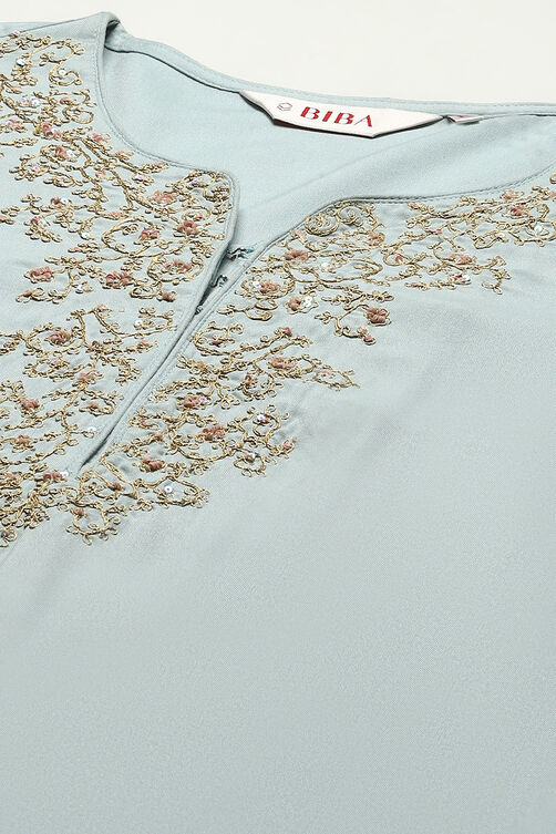 Turquoise Rayon Straight Kurta Pant Suit Set; Combines Kurta, Slim Pant