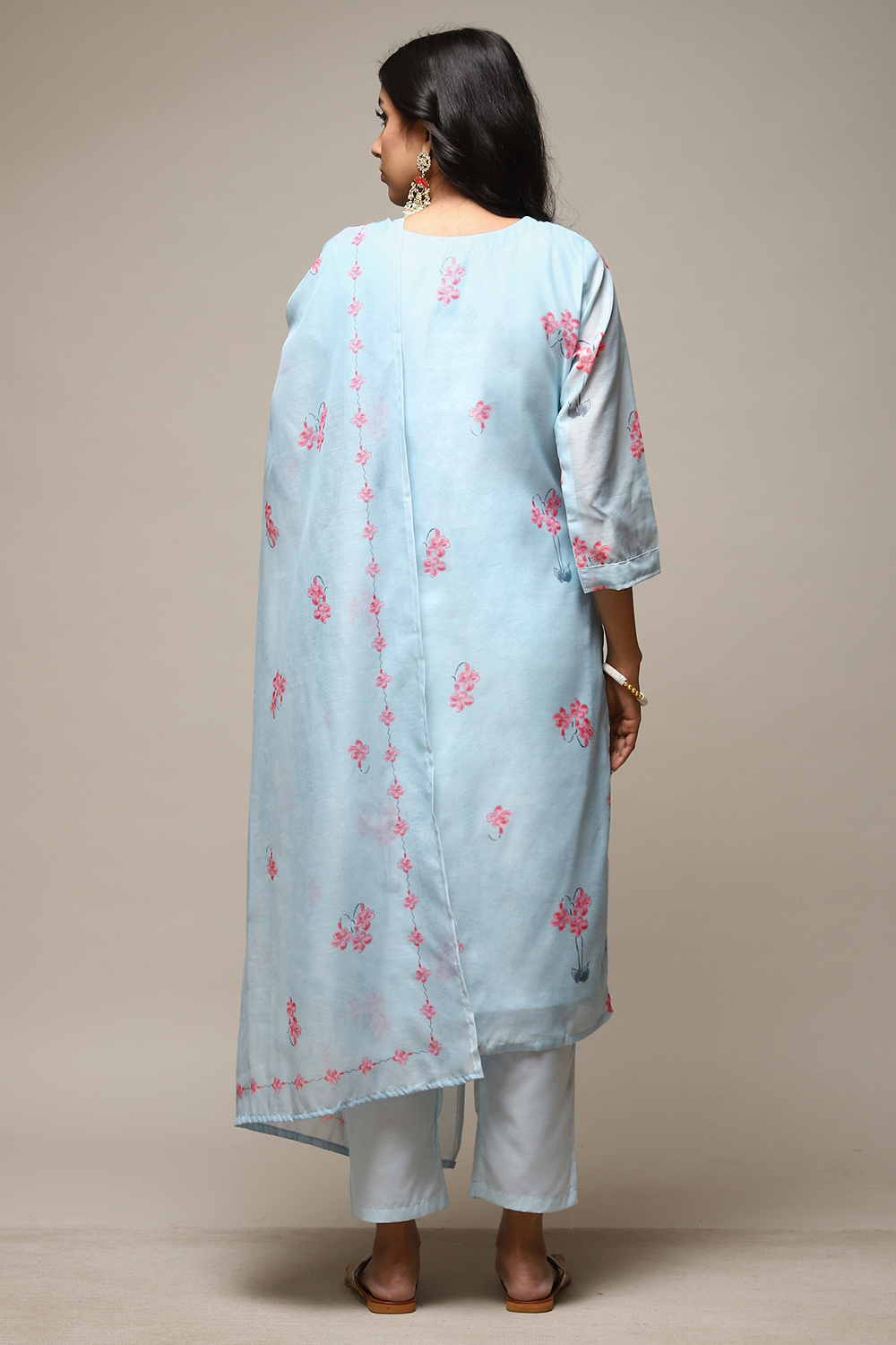 Light Blue Linen Machine Embroidered Unstitched Suit Set
