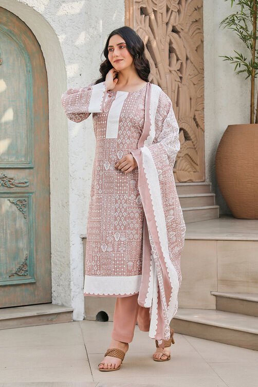 Mauve Cotton Blend Digital Print Unstitched Suit Set