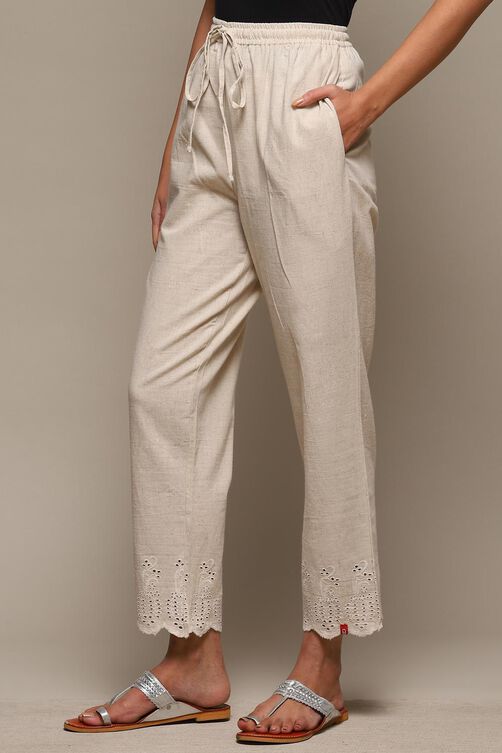 Elevate your attire with the understated elegance of these Natural Cotton Blend straight Pants. Perfectly versatile, pair them with a printed top, complete the look with oxidised earrings, and slip into a pair of mules for an effortlessly chic ensemble.