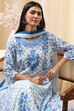 Off-White and Blue Cotton Floral Kalidar Suit Set