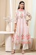 Off-White and Pink Cotton Floral Kalidar Suit Set