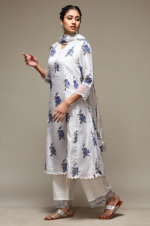 Off White Cotton Blend A-Line Kurta Palazzo Suit Set