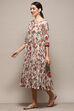 Embrace elegance in an off-white cotton flared dress, adorned with multicolour floral prints.