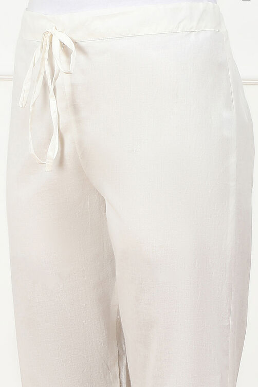 Discover the enduring charm of these Off White narrow Pants. Crafted from Cotton, they offer both comfort and longevity. Combine with a printed top, oxidised earrings, and mules for a chic and effortless ensemble that effortlessly merges sophistication and fashion.