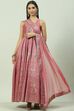 Onion Pink Art Silk Flared Suit Set; Combines Kurta, Churidar and Dupatta