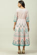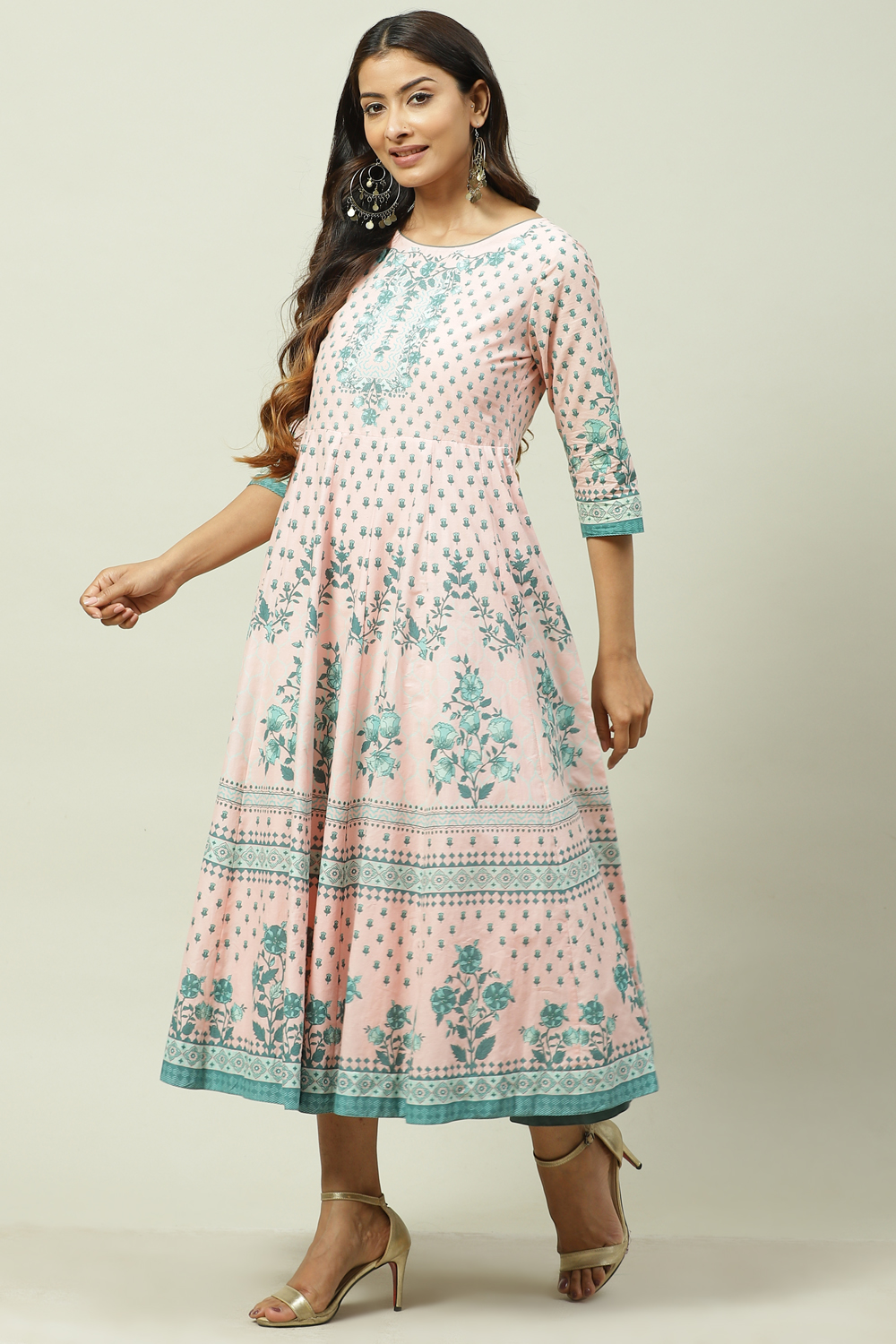 Peach Cotton Flared Fusion Dress With Round Neckline