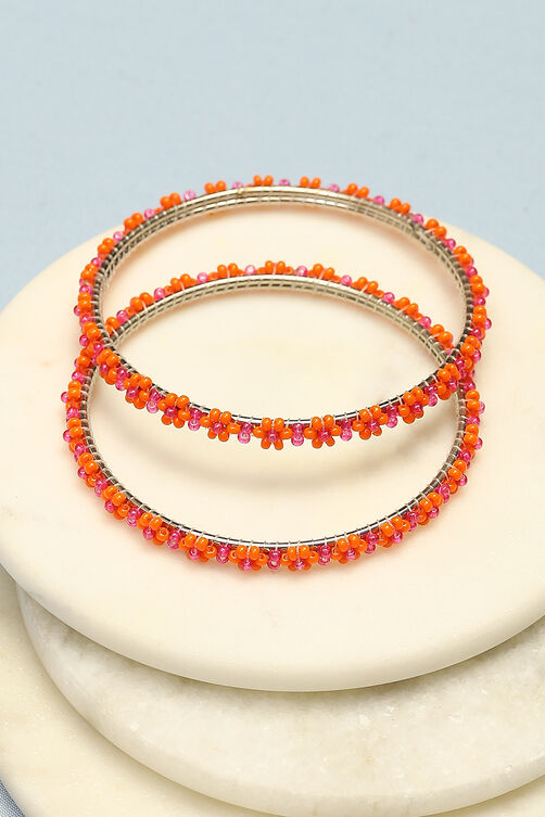 Pink & Orange Metal & Beads Kids Bangles