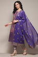 Pink & Purple Voile Straight Printed Kurta Slim Pant Suit Set