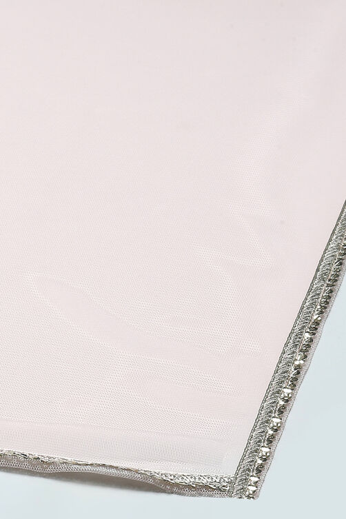 This enchanting pastel pink polyester gathered set is a beautiful addition to any young girl's spring-summer collection. Crafted from 100% polyester, it offers a smooth and comfortable fit that's perfect for warmer weather. The set includes a solid embroidered kurta with a flattering V-neck and 3/4th sleeves, paired with a flowy sharara that adds a playful twist to the traditional silhouette. A matching dupatta completes this 3-piece ensemble, making it ideal for semi-formal gatherings or festive celebrations. Enhance this outfit with simple ballet flats and subtle jewelry to let its understated elegance shine.