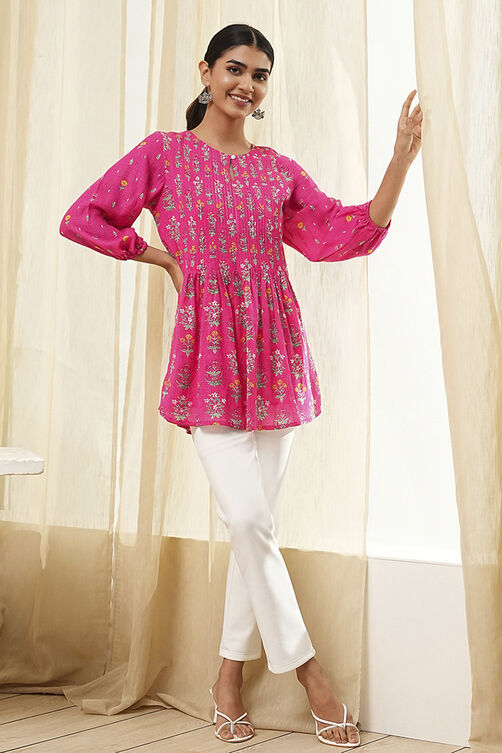Breeze into summer with our vibrant pink printed short kurta, the perfect fusion of comfort and modern style. Made from soft, breathable viscose, this kurta ensures all-day comfort while keeping you effortlessly chic, whether you're out enjoying a sunny day or heading to a casual work setting.