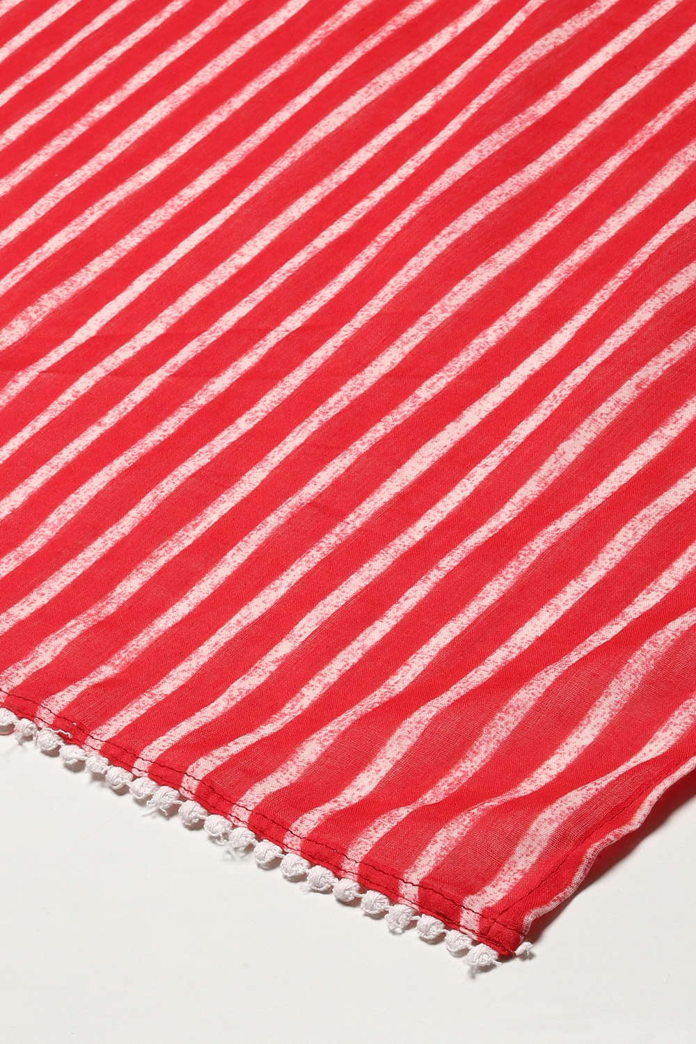 Red Cotton Blend Straight Kurta Palazzo Suit Set