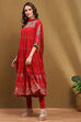 Red Cotton Embroidered Tiered Anarkali Suit Set
