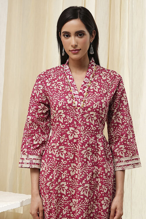 Red Cotton Printed Gathered Suit Set