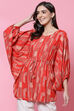 Wear this easy breezy red flared kurta on a fun vacation. It is crafted with natural-origin LIVA fabric. The fit is loose and relaxed. It features a round neckline and three forth bell sleeves. The sinch detailing on the waist compliments every body type. Style with slim pants to elevate your outfit.