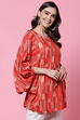 Red LIVA Flared Printed Short Kurti image number 5