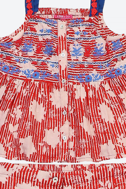 Celebrate the vibrant spirit of spring and summer with this delightful red printed set designed for young girls. This charming 2-piece ensemble features a comfortable cotton fabric that ensures breathability and ease during warmer days. Ideal for casual outings, playdates, or family gatherings, it combines style with practicality.